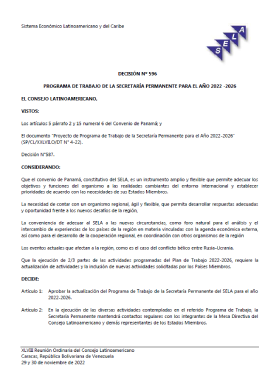 Decisión No. 596 – Programa de Trabajo de la Secretaría Permanente para el año 2022 -2026