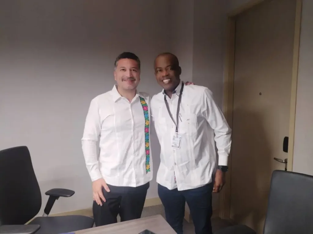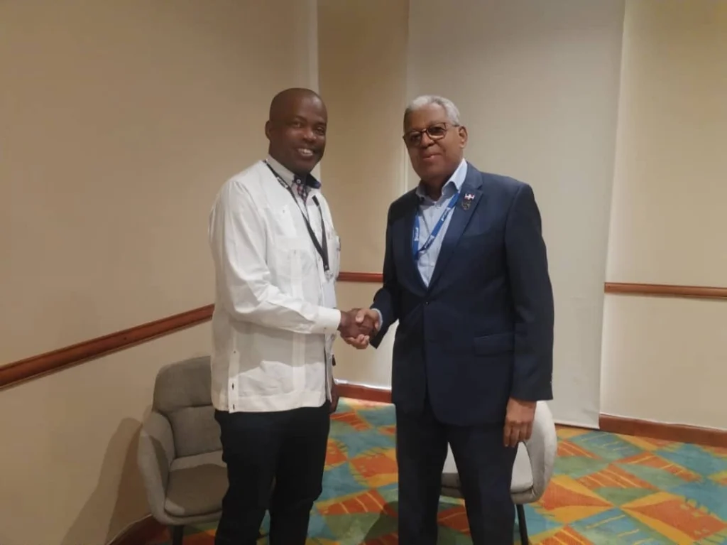 En la jornada del domingo 9 de noviembre, el Embajador Lesly David se reunió con el Secretario General de la Organización de Estados Americanos (OEA), Albert Ramdin. El encuentro permitió intercambiar visiones sobre los desafíos comunes que enfrenta la región y explorar sinergias en la formulación de políticas públicas orientadas al desarrollo sostenible. Ambas autoridades coincidieron en la necesidad de fortalecer la articulación regional y promover iniciativas conjuntas que respondan a las necesidades compartidas de los países miembros.