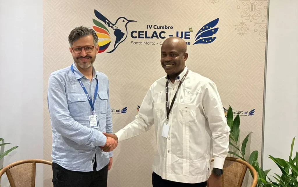 En el marco de la Cumbre, el Embajador David también sostuvo un encuentro con el Viceministro de Asuntos Multilaterales de Colombia, Mauricio Jaramillo Jassir. La reunión permitió revisar los avances de la agenda de trabajo conjunta entre Colombia y el SELA, centrada en el impulso a políticas públicas que fortalezcan la integración regional.