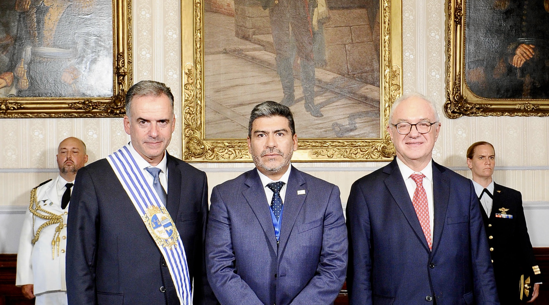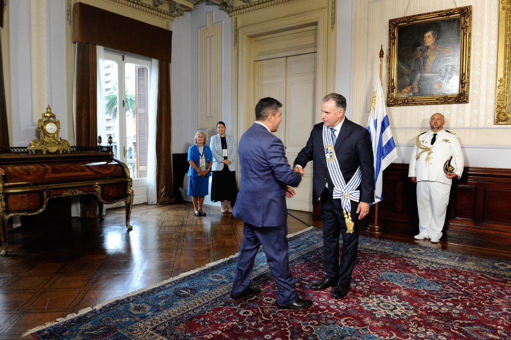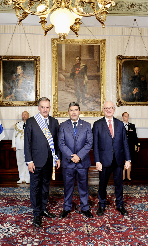Tras la ceremonia de cambio de mando en la plaza Independencia, Montevideo, el Secretario Permanente del Sistema Económico Latinoamericano y del Caribe (SELA), Embajador Clarems Endara, fue recibido en el Palacio Estévez por el Presidente del Uruguay, Yamandú Orsi, y el Ministro de Relaciones Exteriores del Uruguay, Mario Lubetkin.