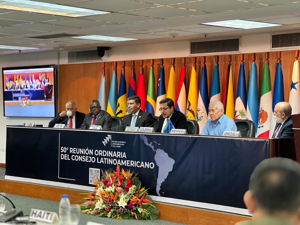 Colombia asumió este miércoles, de manos de Honduras, la presidencia pro témpore de la mesa directiva del Sistema Económico Latinoamericano y del Caribe (SELA), durante la 50° Reunión Ordinaria del Consejo Latinoamericano, del organismo, celebrada en Caracas.