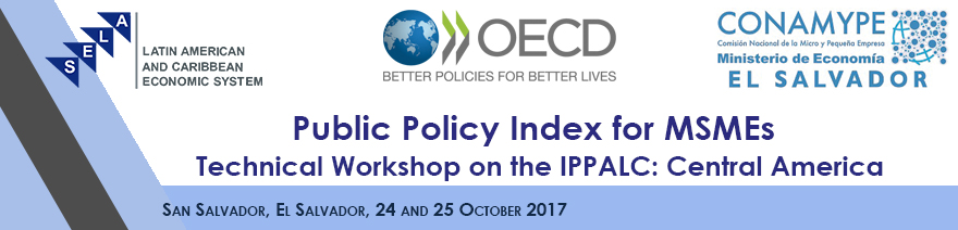 The Permanent Secretariat of the Latin American and Caribbean Economic System (SELA), in collaboration with the Organisation for Economic Cooperation and Development (OECD) and the National Commission for Micro and Small Enterprises (CONAMYPE) of the Ministry of Economy of the Salvador, will conduct the “Technical Workshop on the Public Policy Index for MSMEs in Latin America and the Caribbean (IPPALC): Central America” in San Salvador, El Salvador, on 24 and 25 October 2017.