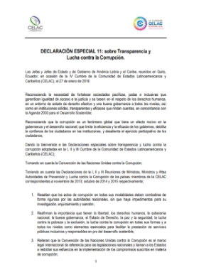 Declaración especial 11: sobre Transparencia y Lucha contra la Corrupción. IV Cumbre CELAC