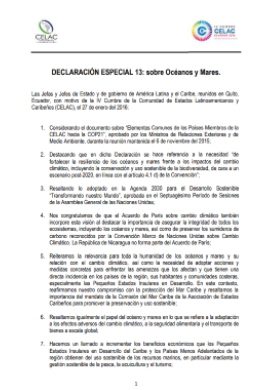 Declaración especial 13: sobre Océanos y Mares. IV Cumbre CELAC