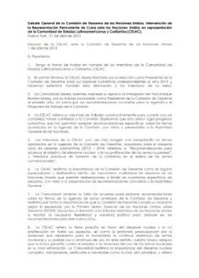 Debate General de la Comisión de Desarme de las Naciones Unidas. Intervención de la Representación Permanente de Cuba ante las Naciones Unidas en representación de la Comunidad de Estados Latinoamericanos y Caribeños (CELAC)