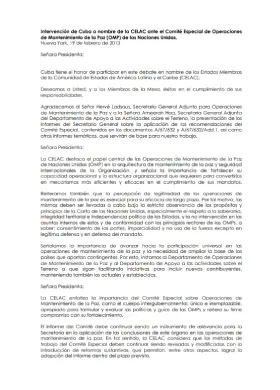 Intervención de Cuba a nombre de la CELAC ante el Comité Especial de Operaciones de Mantenimiento de la Paz (OMP) de las Naciones Unidas