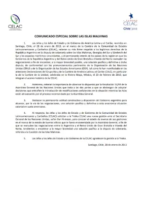 Comunicado especial sobre Las Malvinas