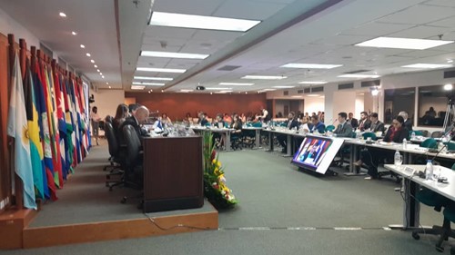 “Muestra de ello es la tramitación de la Resolución en el marco de la AGNU “Cooperación entre el sistema de naciones unidas y el SELA” amablemente presentado por Bolivia y copatrocinada y apoyada por una mayoría de la membresía del SELA, esta permitirá continuar con la coordinación constante con organismos como CEPAL, FAO, OMT, UNCTAD, Oficina del as Naciones Unidas para la Reducción de Riesgo de Desastres, entre otros”, detalló el Secretario Permanente.