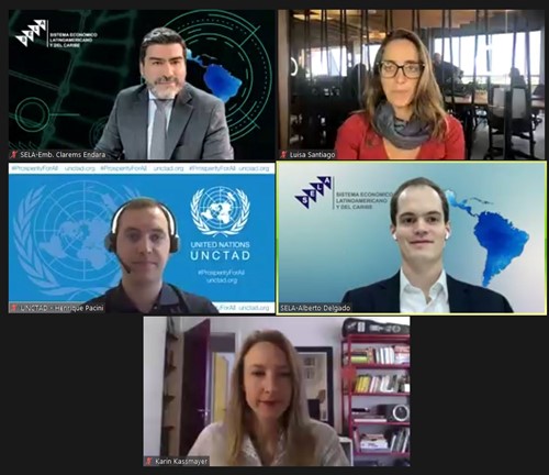 El Sistema Económico Latinoamericano y del Caribe (SELA) conjuntamente con la Conferencia de las Naciones Unidas sobre Comercio y Desarrollo (UNCTAD) iniciaron este martes el Seminario Online “La Economía Circular como Estrategia para el Desarrollo: El Rol del Poder Legislativo”,  con un selecto panel de invitados, quienes presentaron las estrategias y avances para el desarrollo económico sostenible e inclusivo, desde la perspectiva de la Economía Circular.