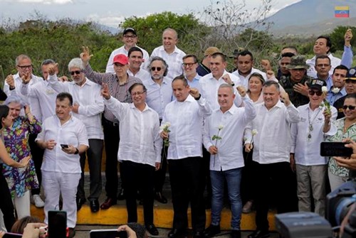 El acto protocolar se llevó a cabo en el puente internacional Simón Bolívar, el principal de los puestos fronterizos entre los dos países, e incluyó el paso de los primeros camiones de carga en ambos sentidos.